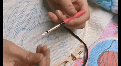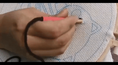 Suivez le motif pré-imprimé et enfoncez l'aiguille dans la toile avec un mouvement simple et répétitif.